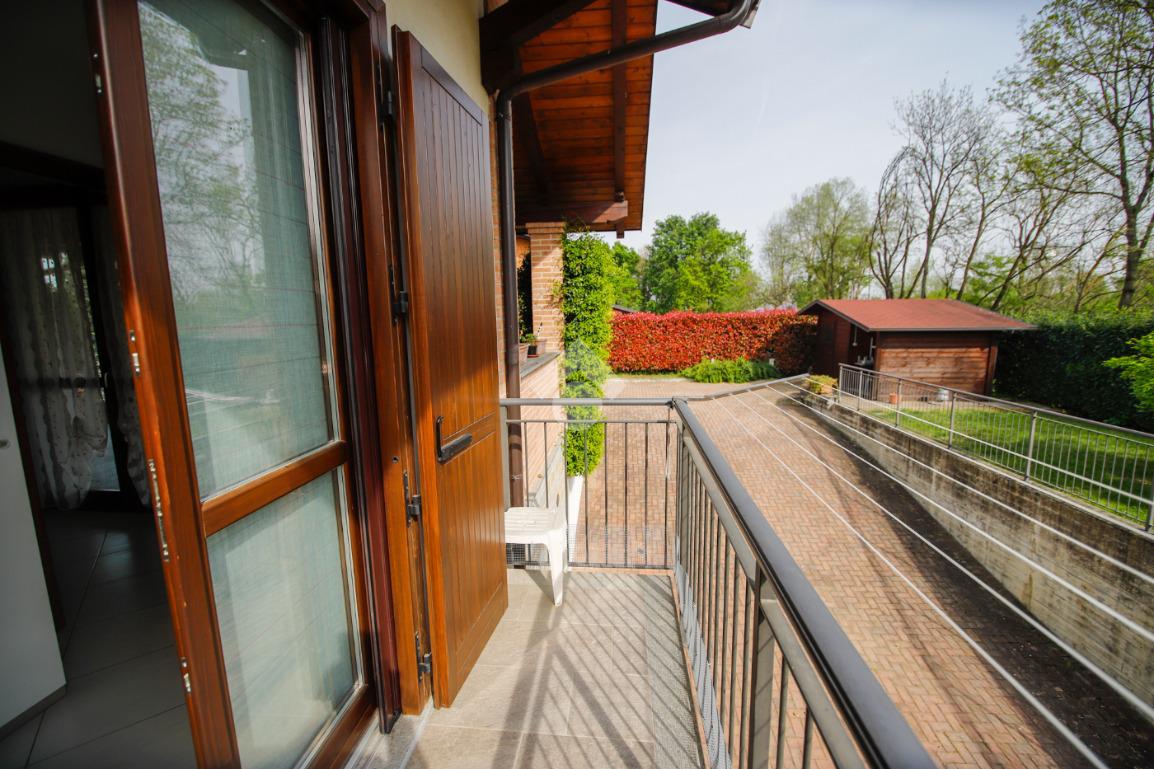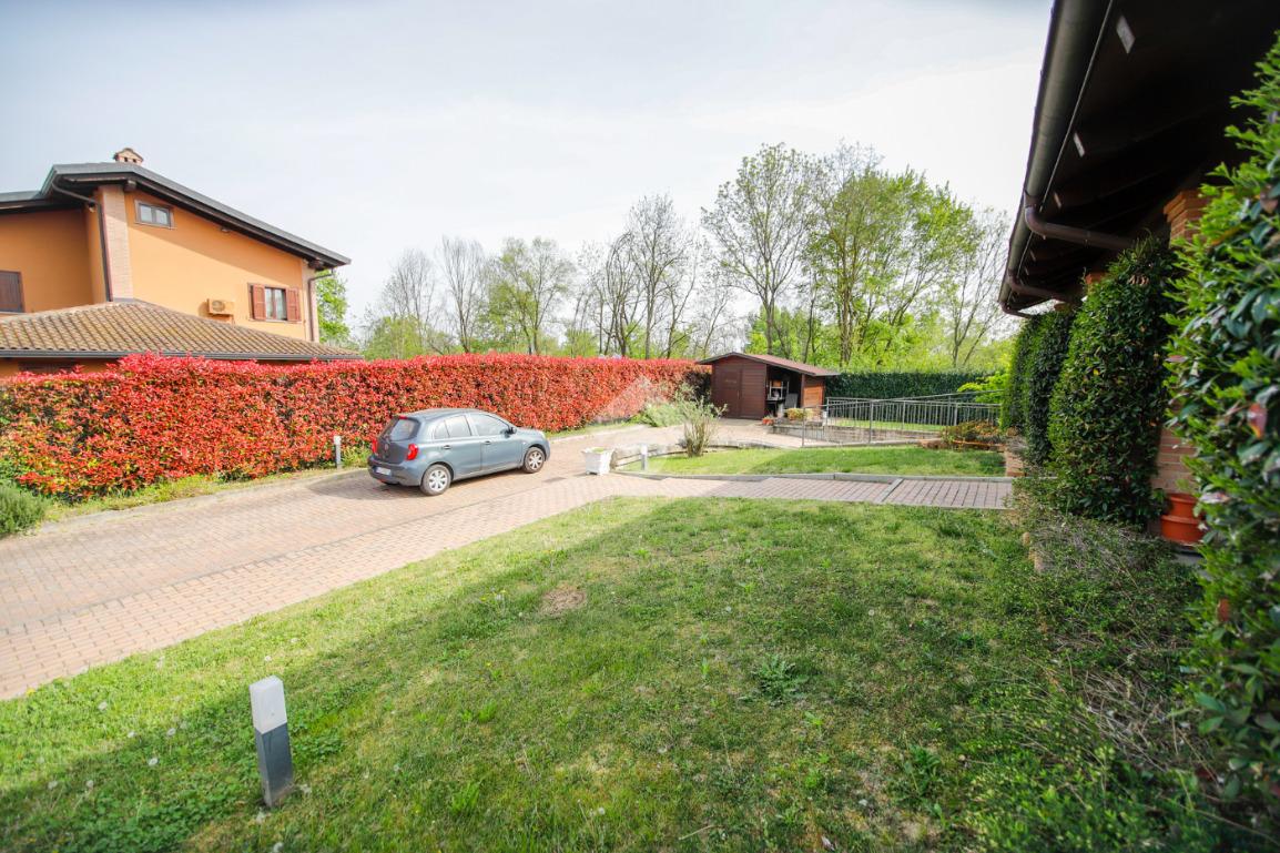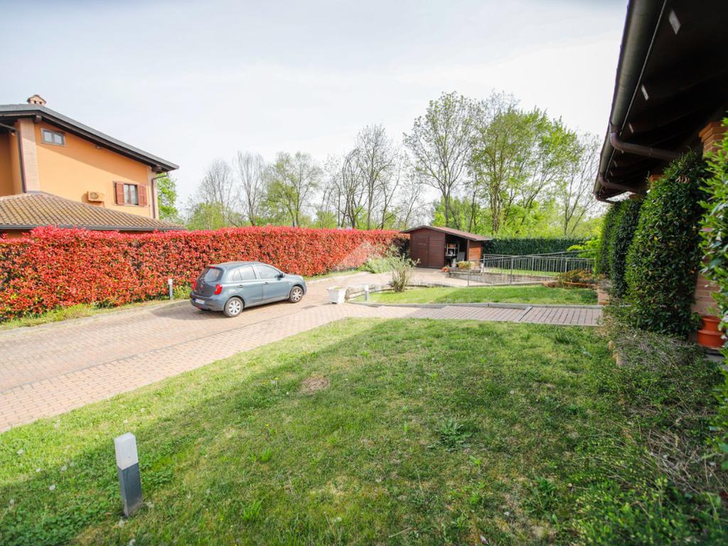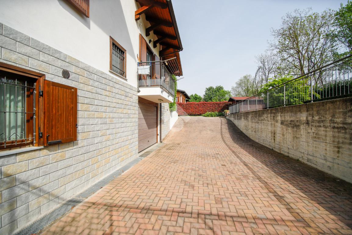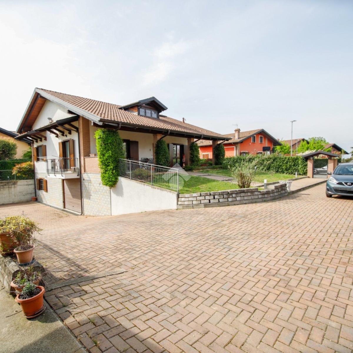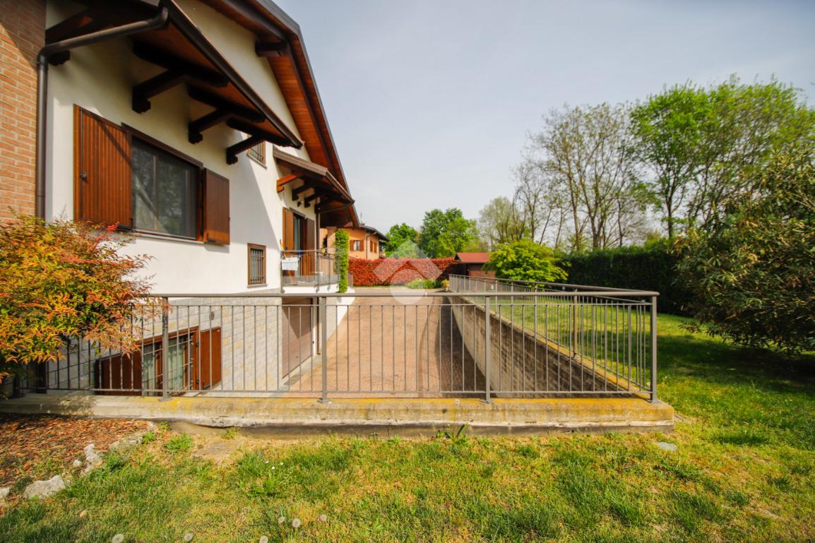 Il piano ospita inoltre una camera attualmente adibita a studio e un bagno con doccia. Completa il piano una funzionale lavanderia attrezzata, dotata di uscita su un balcone dedicato. Dalla scala in marmo si accede al primo piano dove si sviluppa la zona notte disposta da due ampie camere da letto, entrambe dotate di comoda cabina armadio, un bagno di generose dimensioni con vasca e un ripostiglio. Al piano interrato si trova un accogliente locale di sgombero adibito a tavernetta, un bagno con doccia e un comodo box auto doppio, dotato di basculante elettrificato e accesso tramite rampa rifinita in autobloccanti, oltre a un locale tecnico con caldaia a condensazione sostituita di recente. L’ampia area esterna comprende un pratico locale per attrezzi, ideale per la gestione del giardino, il cortile piantumato e il giardino privato che circonda l'intera villa. L'immobile è provvisto di impianto di irrigazione automatica suddiviso per zone, riscaldamento a pavimento differenziato per piano, sistema di antifurto planimetrico e volumetrico, pannelli solari dedicati alla produzione di acqua calda e passo carraio elettrificato.
