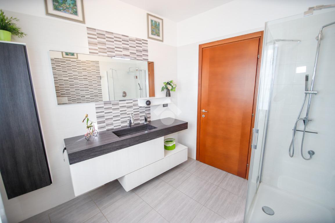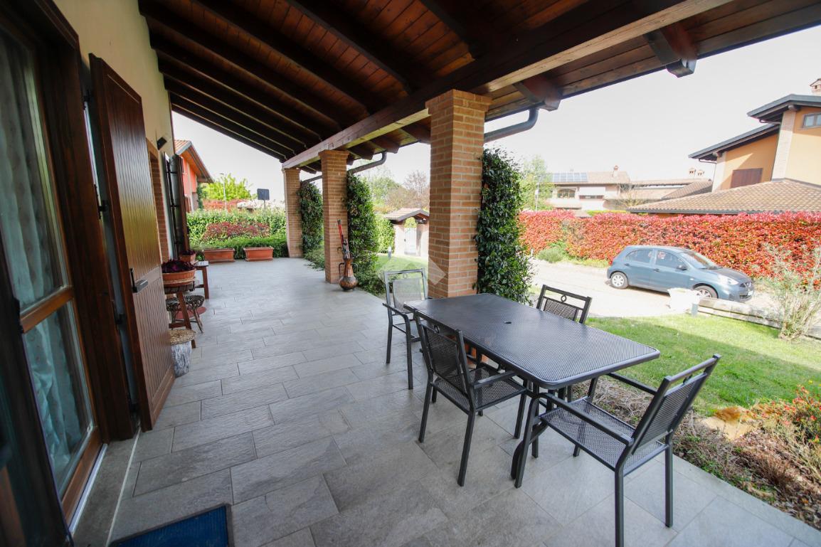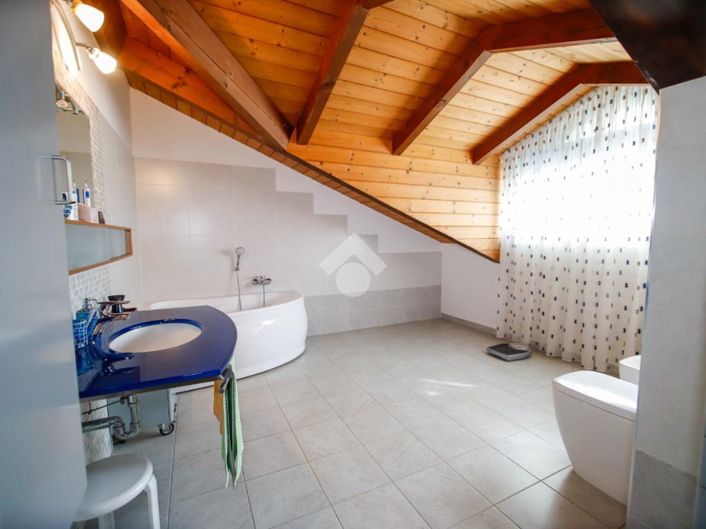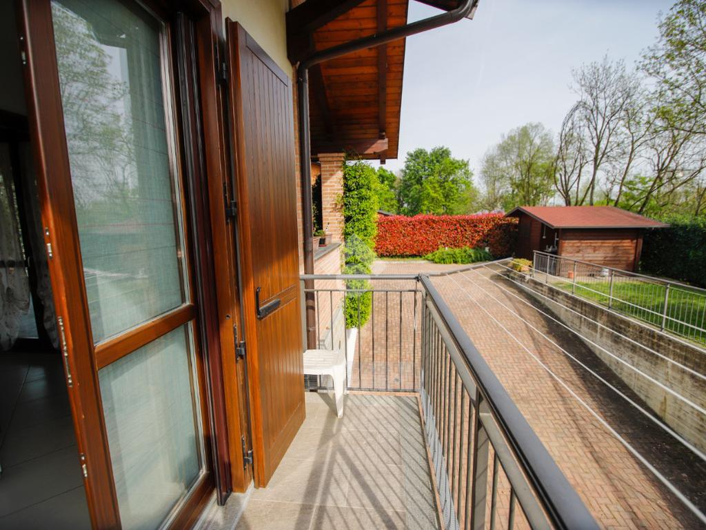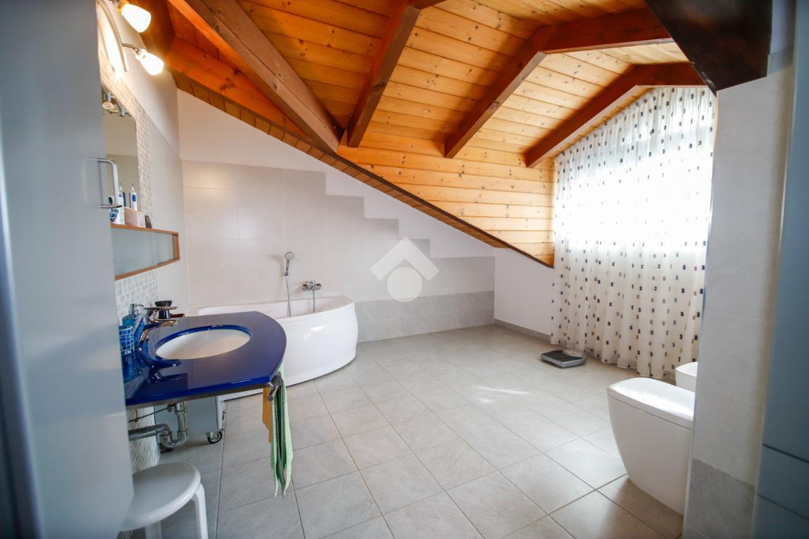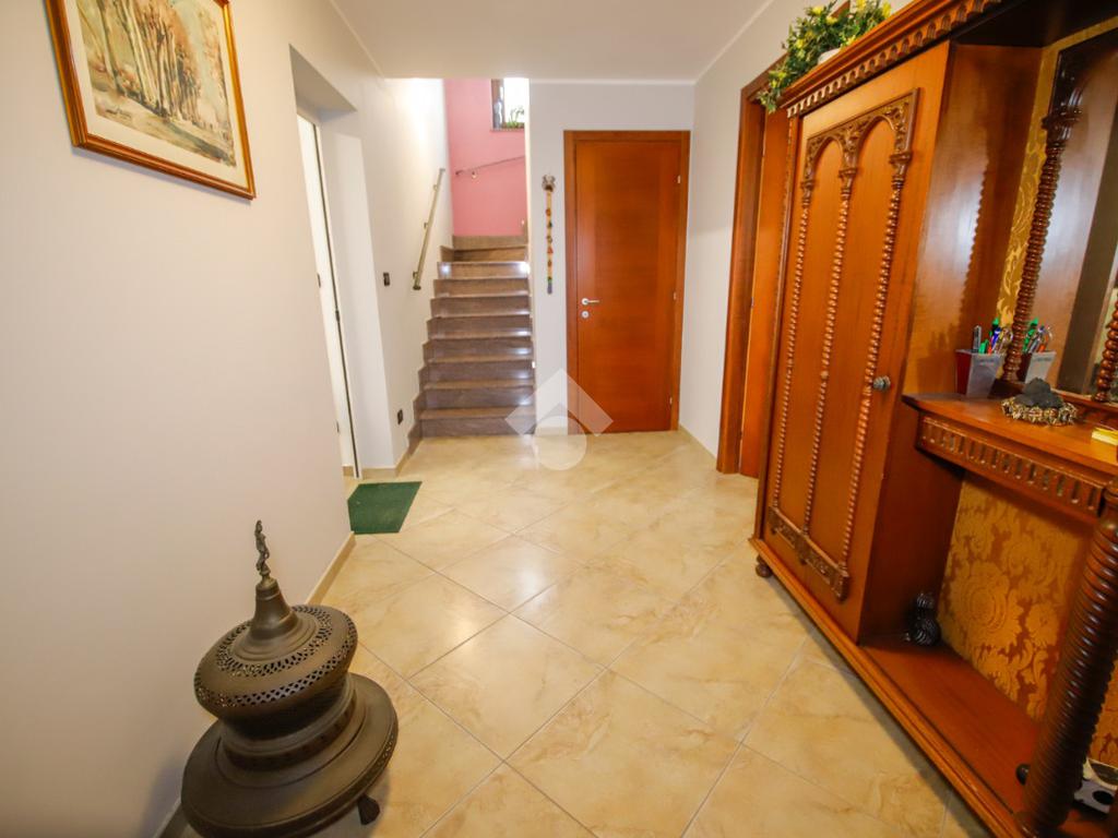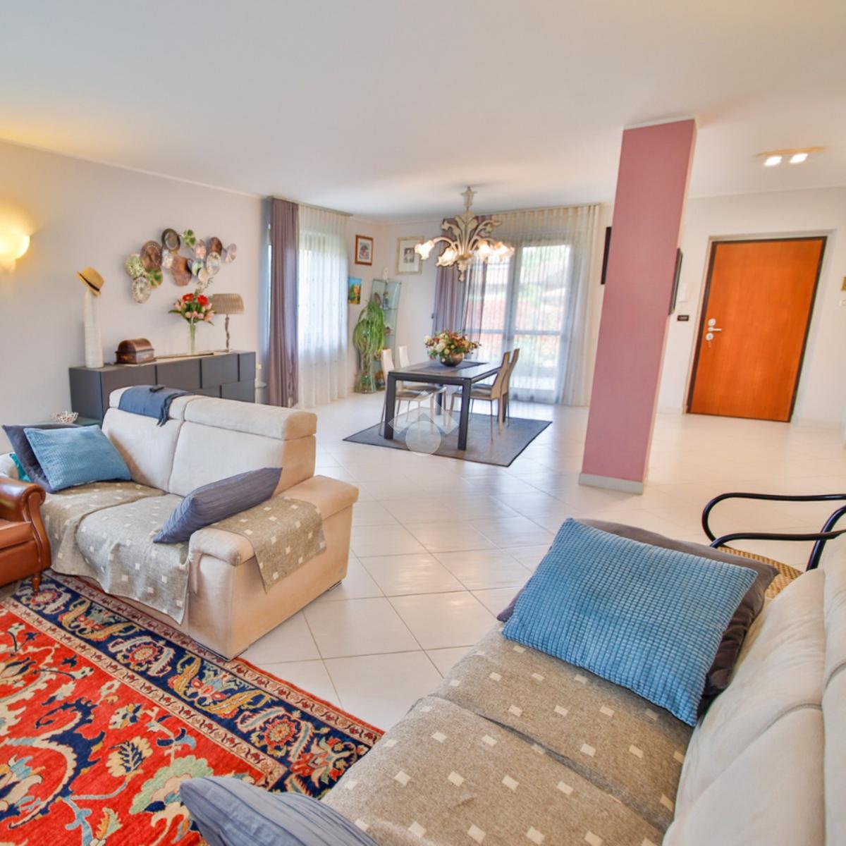 Il piano ospita inoltre una camera attualmente adibita a studio e un bagno con doccia. Completa il piano una funzionale lavanderia attrezzata, dotata di uscita su un balcone dedicato. Dalla scala in marmo si accede al primo piano dove si sviluppa la zona notte disposta da due ampie camere da letto, entrambe dotate di comoda cabina armadio, un bagno di generose dimensioni con vasca e un ripostiglio. Al piano interrato si trova un accogliente locale di sgombero adibito a tavernetta, un bagno con doccia e un comodo box auto doppio, dotato di basculante elettrificato e accesso tramite rampa rifinita in autobloccanti, oltre a un locale tecnico con caldaia a condensazione sostituita di recente. L’ampia area esterna comprende un pratico locale per attrezzi, ideale per la gestione del giardino, il cortile piantumato e il giardino privato che circonda l'intera villa. L'immobile è provvisto di impianto di irrigazione automatica suddiviso per zone, riscaldamento a pavimento differenziato per piano, sistema di antifurto planimetrico e volumetrico, pannelli solari dedicati alla produzione di acqua calda e passo carraio elettrificato.