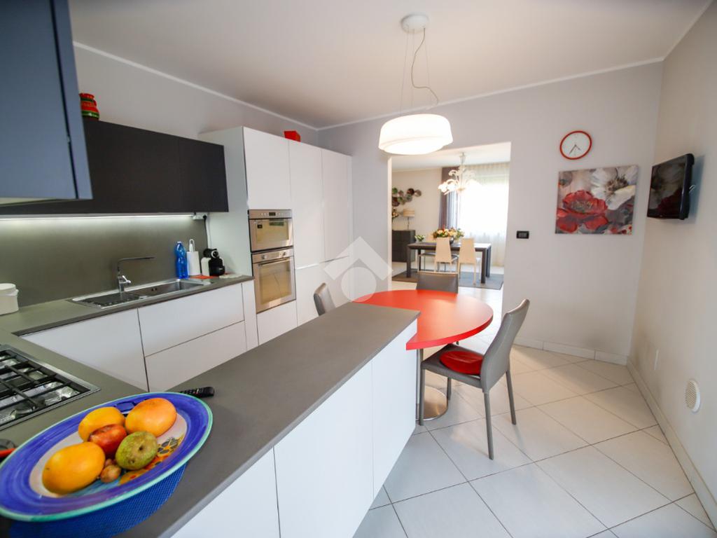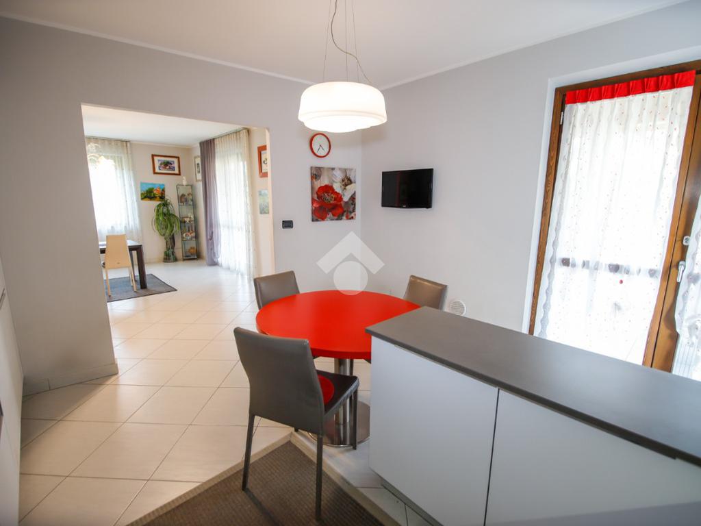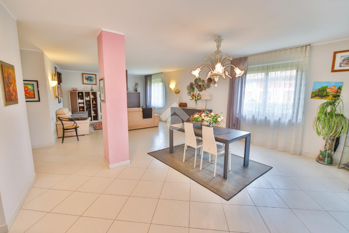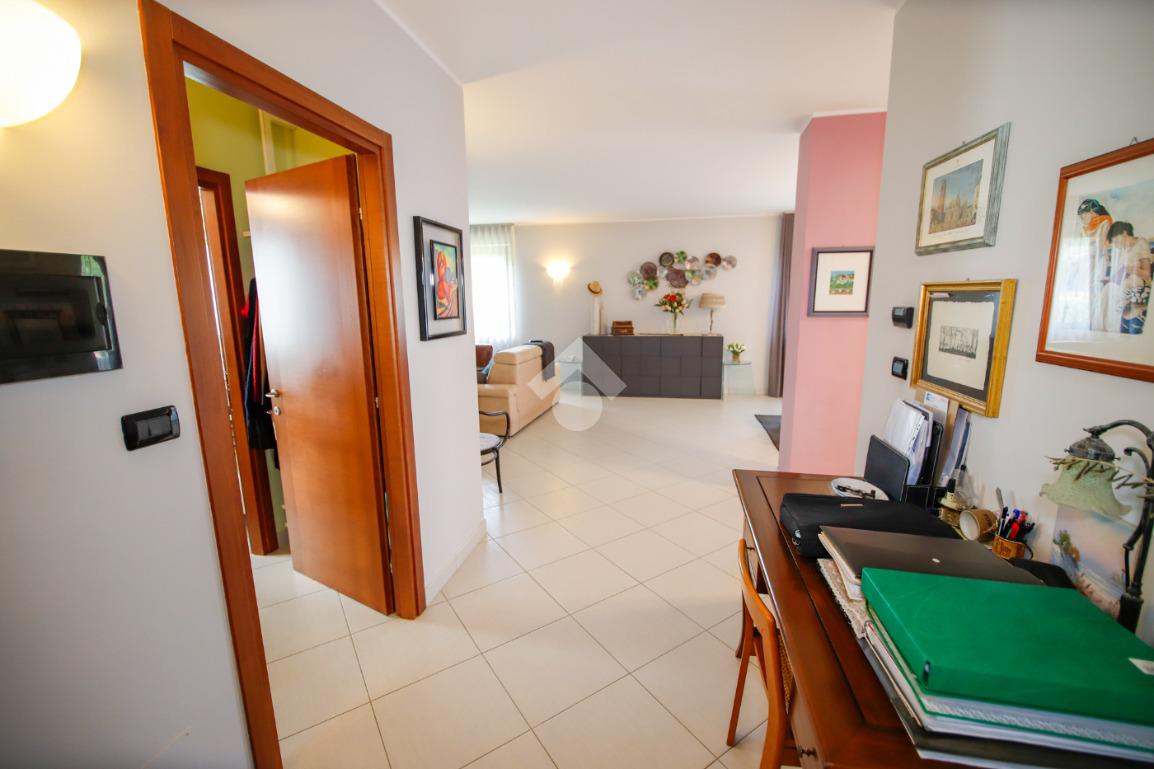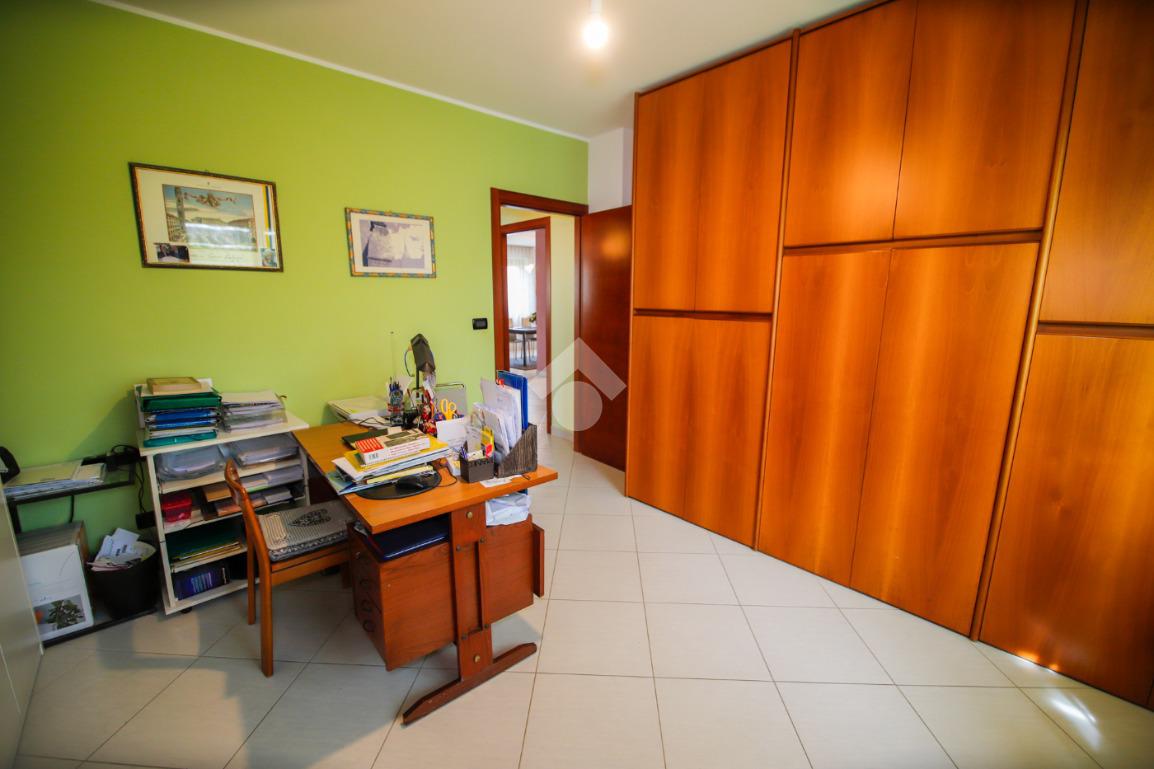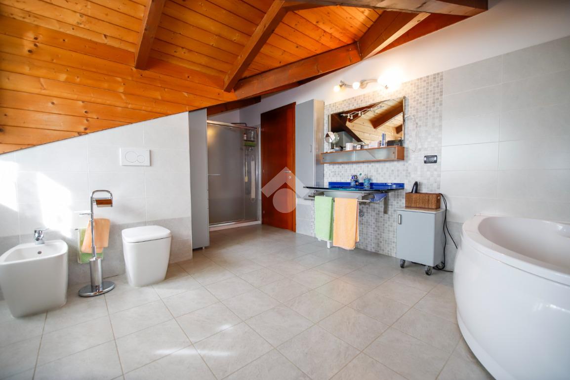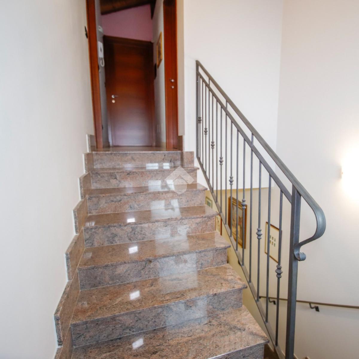 Il piano ospita inoltre una camera attualmente adibita a studio e un bagno con doccia. Completa il piano una funzionale lavanderia attrezzata, dotata di uscita su un balcone dedicato. Dalla scala in marmo si accede al primo piano dove si sviluppa la zona notte disposta da due ampie camere da letto, entrambe dotate di comoda cabina armadio, un bagno di generose dimensioni con vasca e un ripostiglio. Al piano interrato si trova un accogliente locale di sgombero adibito a tavernetta, un bagno con doccia e un comodo box auto doppio, dotato di basculante elettrificato e accesso tramite rampa rifinita in autobloccanti, oltre a un locale tecnico con caldaia a condensazione sostituita di recente. L’ampia area esterna comprende un pratico locale per attrezzi, ideale per la gestione del giardino, il cortile piantumato e il giardino privato che circonda l'intera villa. L'immobile è provvisto di impianto di irrigazione automatica suddiviso per zone, riscaldamento a pavimento differenziato per piano, sistema di antifurto planimetrico e volumetrico, pannelli solari dedicati alla produzione di acqua calda e passo carraio elettrificato.