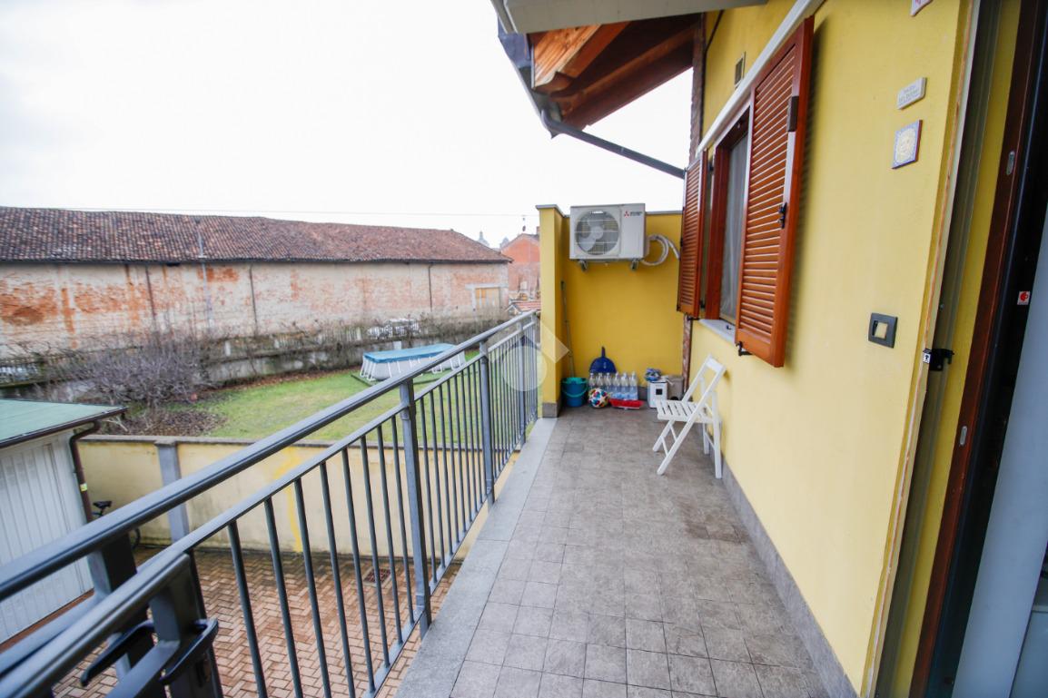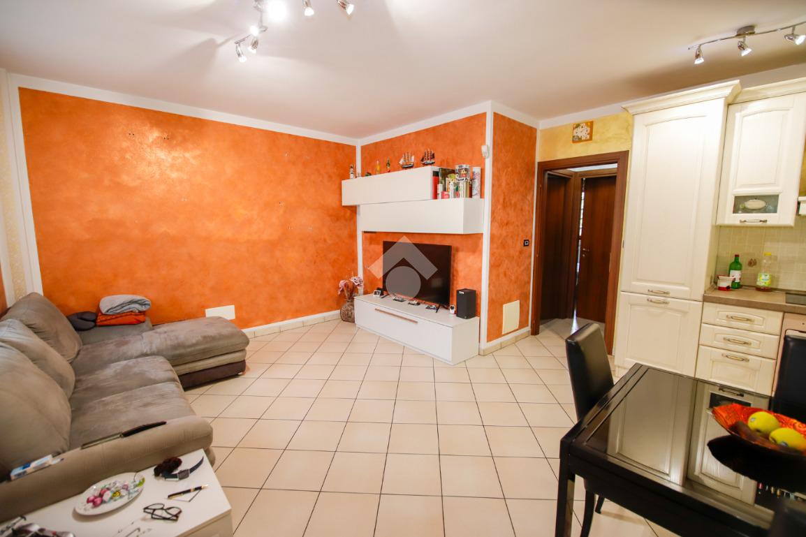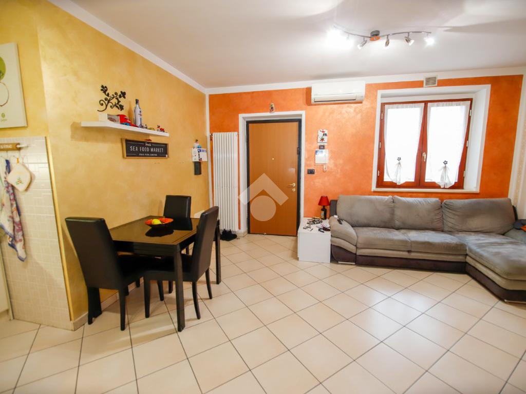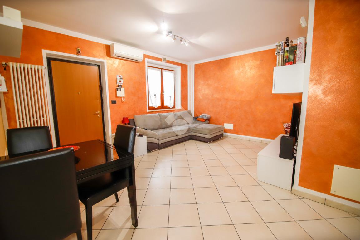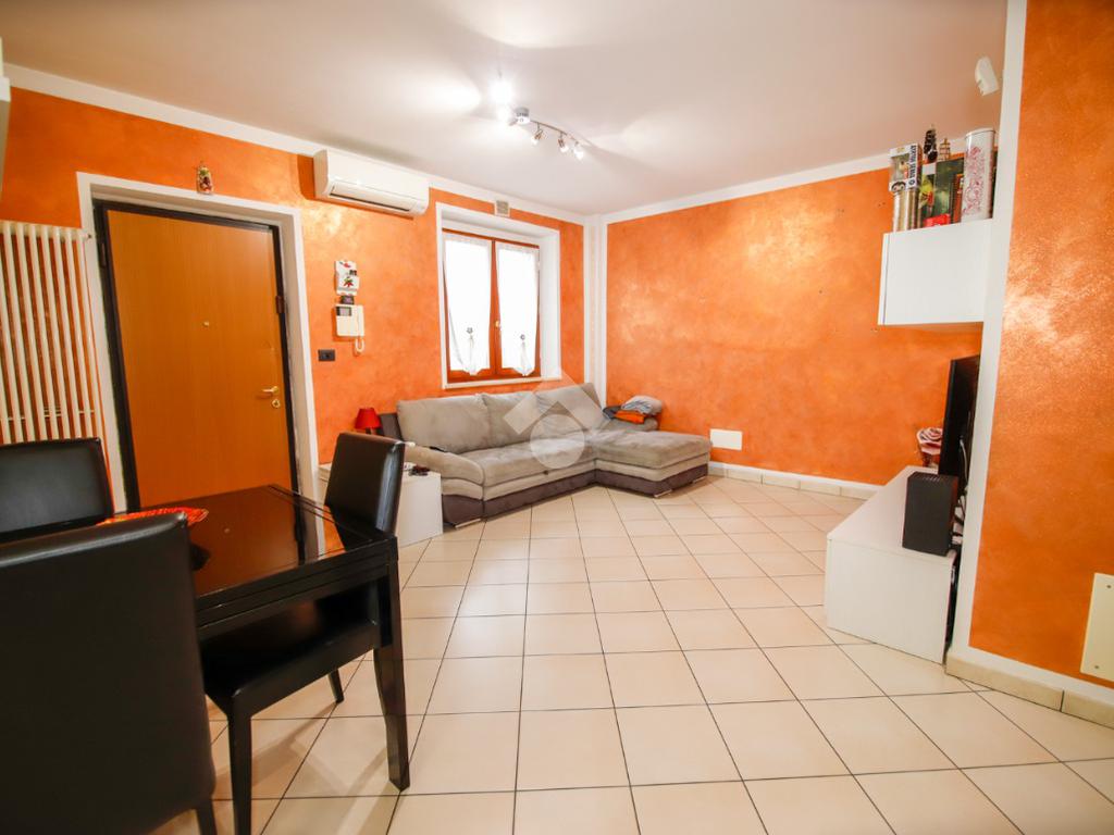 Vicino al centro paese e alle scuole, soluzione di costruzione del 2010 con doppia esposizione. L'immobile è situato al primo piano, l'ingresso dal portoncino blindato, è sulla zona giorno composta da luminoso soggiorno con angolo cottura. Il disimpegno separa la zona notte, dotata di camera da letto matrimoniale con finestra e cameretta con sfogo sul balcone. A completare il piano, il bagno finestrato con doccia. L'immobile si trova in ottimo stato interno, è presente l'impianto di allarme volumetrico e perimetrale, l'impianto di climatizzazione, il videocitofono e gli infissi sono con il doppio vetro e zanzariere. Di proprietà il box auto singolo. Il riscaldamento è semi-autonomo a radiatori.