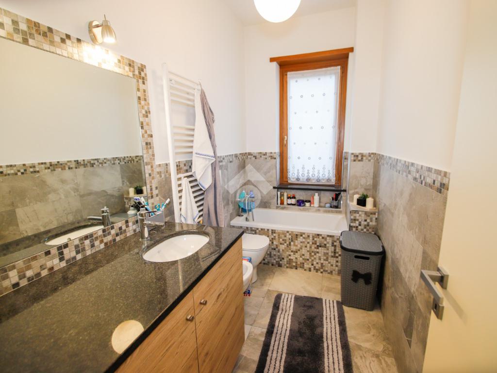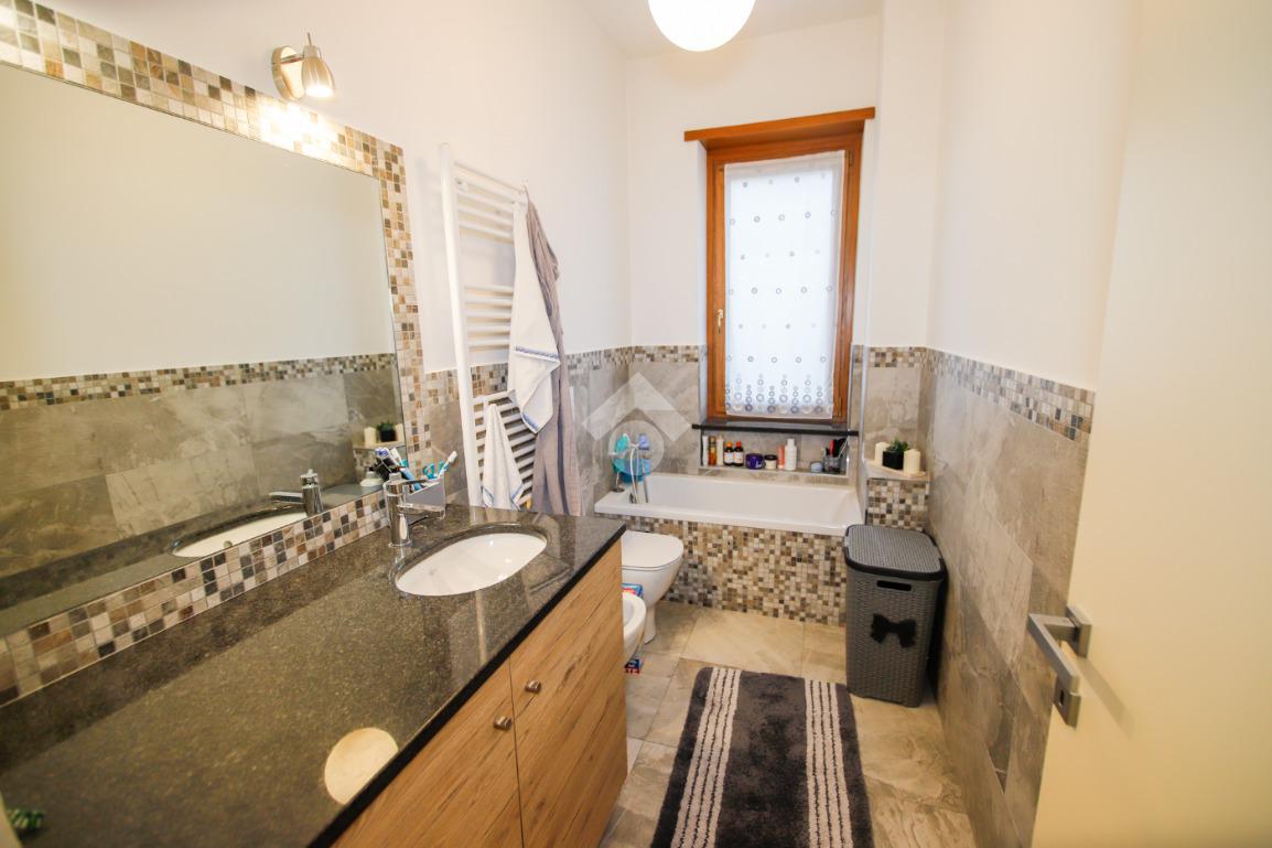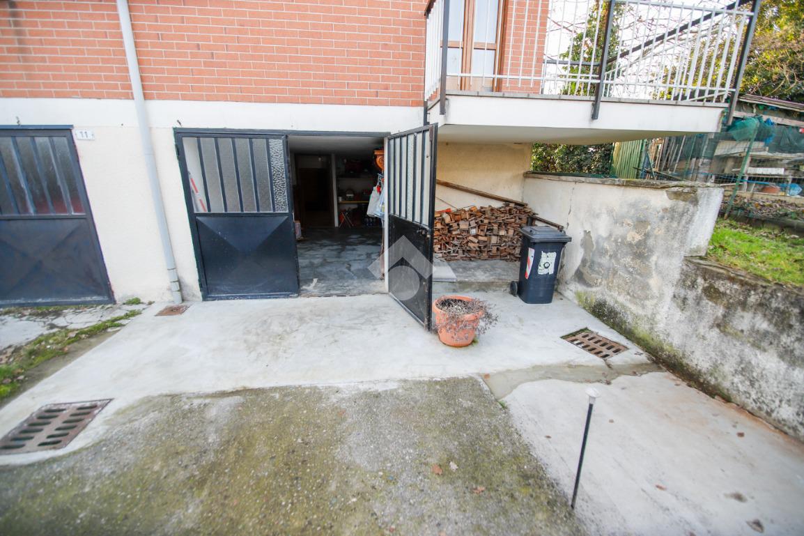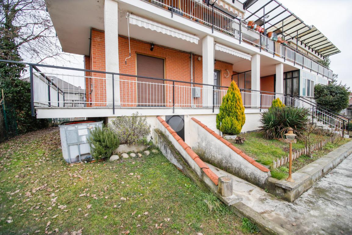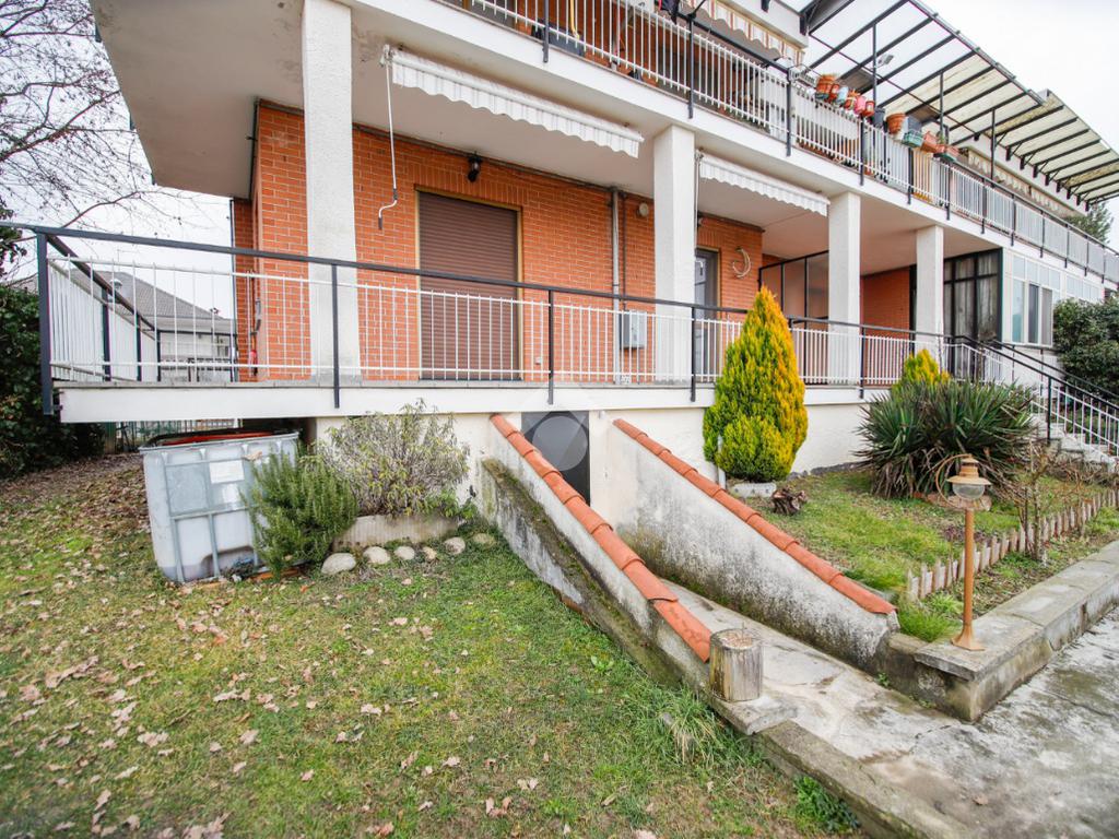 In contesto senza spese condominiali, situato in zona residenzale e tranquilla, appartamento al piano rialzato. L'immobile è stato oggetto di ristrutturazione totale circa 9 anni fa e gode di tripla esposizione. L'ingresso con porta blindata è sulla zona giorno che si compone di cucina abitabile a vista su sala e bagno con doccia e finestra. La zona notte dispone di luminosa camera matrimoniale, cameretta e bagno finestrato con vasca. Tutti gli ambienti hanno sfogo sul balcone/terrazzino di cui uno attrezzato di tende da sole. Di pertinenza al piano interrato è presente una cantina piastrellata, un ripostiglio, un locale lavanderia usabile come tavernetta e un box auto singolo. L'immobile dispone di riscaldamento autonomo a pavimento con caldaia a condensazione sostituita recentemente e termostato in ogni ambiente, infissi in pvc con il doppio vetro, zanzariere e tapparelle elettriche. Orto uso esclusivo di circa 30mq.